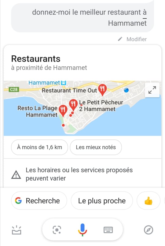 Supposons que vous cherchez un hôtel à Hammamet, pensez-vous que votre recherche écrite sera la même que la recherche vocale ? Laissez-moi deviner… la recherche écrite sera « Meilleur hôtel à Hammamet » alors que la recherche vocale sera « Ok Google, proposez-moi le meilleur hôtel à Hammamet »